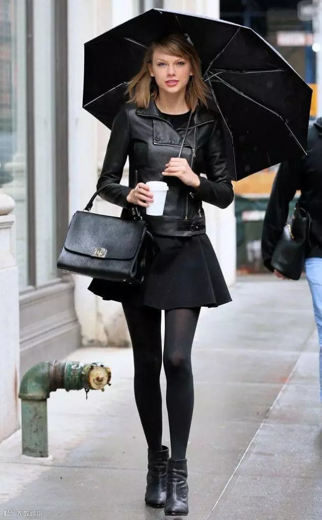 毛衣配Mini皮裙的搭配很适合春天,短毛衣拉高了腰线,皮裙给人一种帅气的感觉,除了黑色也可以尝试一下其他颜色。那种带拉链的皮裙更是多了一分机车女郎的感觉,真是各种显腿长。
