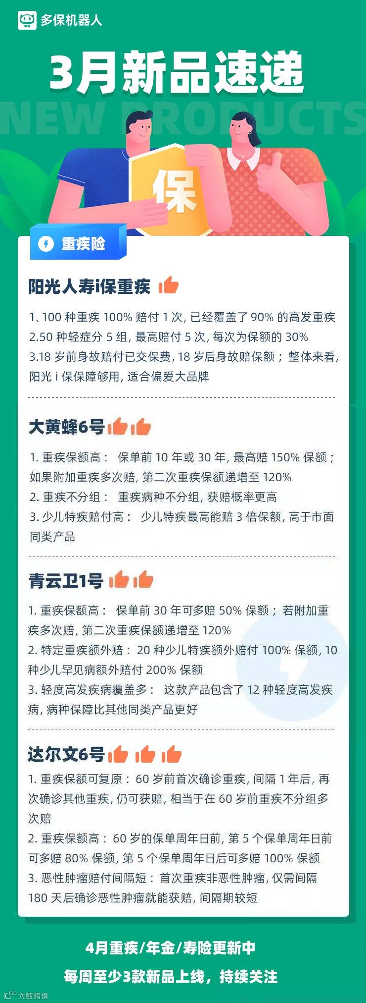3月i保重疾、达尔文6号、青云卫1号等4款重疾新品上线!