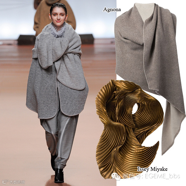 同是打结,却各有千秋—— Issey Miyake的超大款披肩在胸前随意一系,慵懒又时髦的秋冬造型便跃然眼前。你可以学Issey Miyake,继续走灰色休闲风格;或尝试更为出众大胆的造型,比如这条金色百褶围巾。