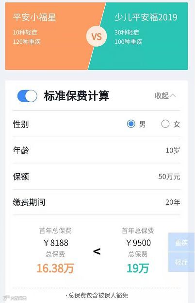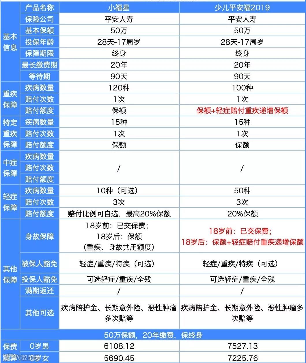 小福星是为未成年出品的重疾险,现在我们一起来看看小福星和少儿平安福19的差别: