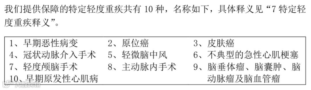 这10种轻症里面,有3个轻症为早期恶性病变、原位癌以及皮肤癌,在其他重疾险里属于极早期的恶性肿瘤或恶性病变。