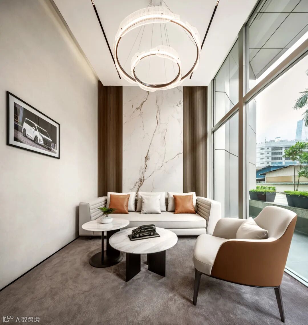 For the layout, we used "scenario-driven design" to weave DENZA's diverse scenarios such as city commuting, business hosting, and outdoor adventures—into the space. The master idea is that our team translated signature elements from DENZA vehicles, like the floating frame architecture and leather-grain textures, into the interior. Which high demands on both construction techniques and material selection, especially for projects overseas. These touches elevate the space beyond quality into a defining DENZA signature.