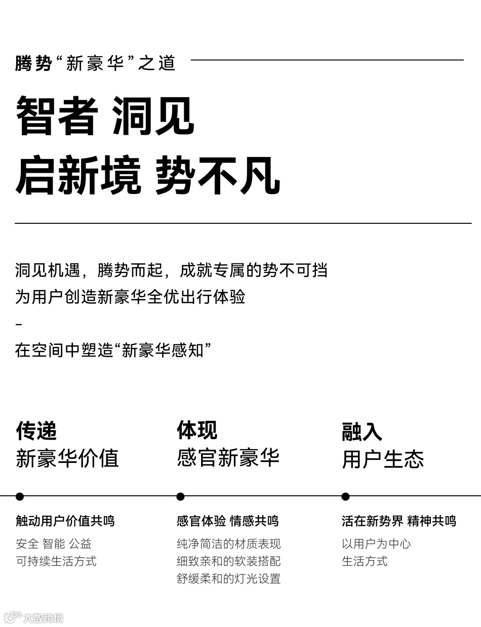 空间布局我们采取“场景化设计”的思路,把腾势汽车在城市出行、商务接待、户外出游等丰富的场景融入到空间之中。
