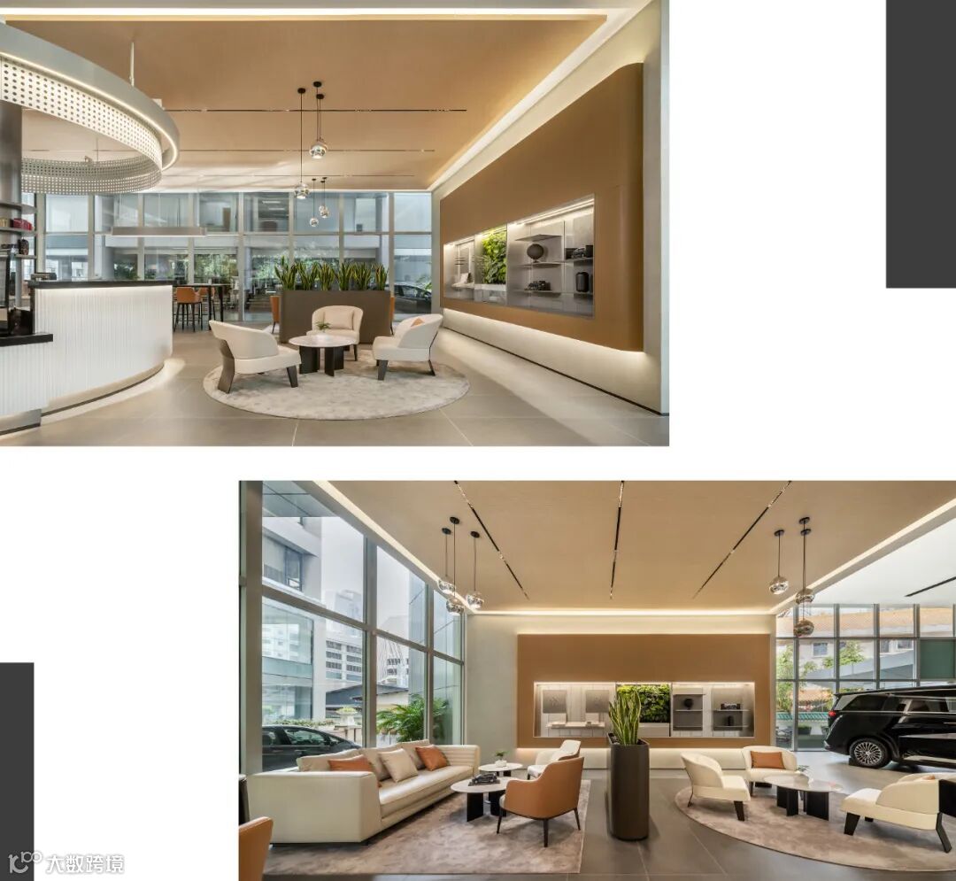 其中最大的靠窗区域更能满足洽谈、工作、会议等多元的需求,深得业主认可。空间的后则入口与后方写字楼出入口连通,日常有较大人流量,我们把这里视作“橱窗”,期望腾势空间独有的氛围能吸引更多的关注。