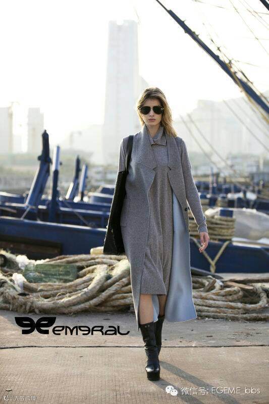 在款式设计方面依然延续Emeral独创的经典水滴廓形,水滴般的流畅线条在视觉上拉长女性曲线。与以往不同的是,EMERAL推陈出新,以夏天手法设计和处理冬天款式,精纺双面呢的小波浪裁剪,让整体廓形更加简洁流畅,背后开扣和细节的小褶皱处理令女性柔美浪漫又年轻俏皮,还隐约透着一层宛若少女禁忌的神秘感。在大衣设计上柔软的马海毛覆盖上质地轻薄的欧根纱与之拼接,使得整体感觉通透、自然,简洁大方的同时多了一份优雅与别致。