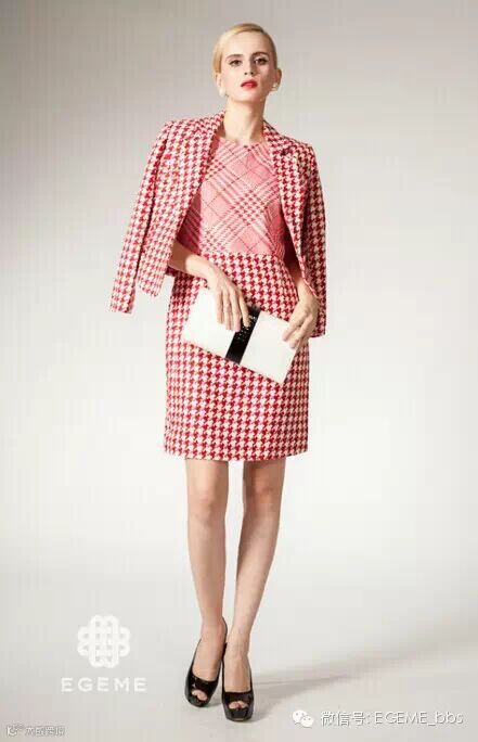 红橙色的运用在本季依加米EGEME秋冬职业系列中表现的淋漓尽致。合理的运用上流行元素宠儿:千鸟格,波点,格状的特色表现,职场中干炼不失俏皮,合体剪裁的效果,大方,优雅且时尚!