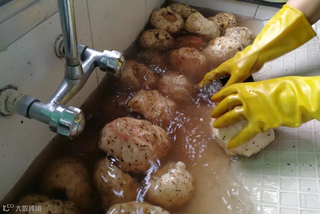 传统手工魔芋豆腐第1道工序:洗魔芋