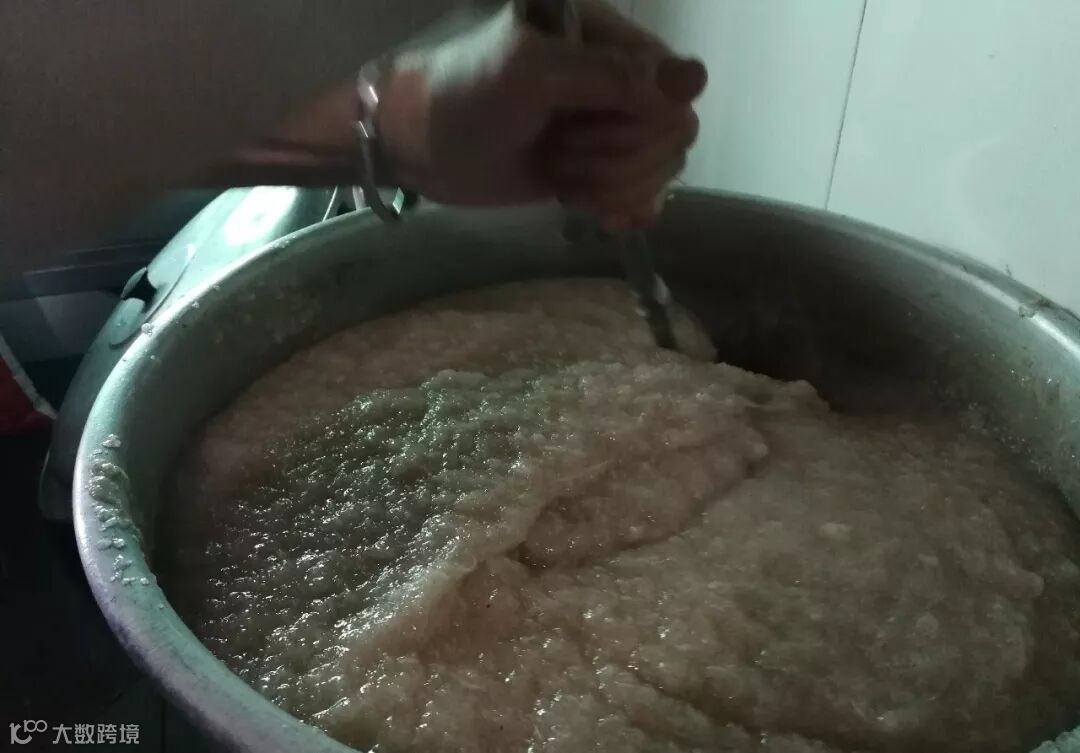 这道工序技术含量高:水和魔芋浆的比例、火力大小、温度控制、搅拌次数,它是影响豆腐质量的关键之二。不要小瞧这道工序,最累的就是这道工序,开火后就要不断的用力搅拌否则糊锅,游大姐因这道工序时间长造成肩膀关节炎酸痛多次服药修养。