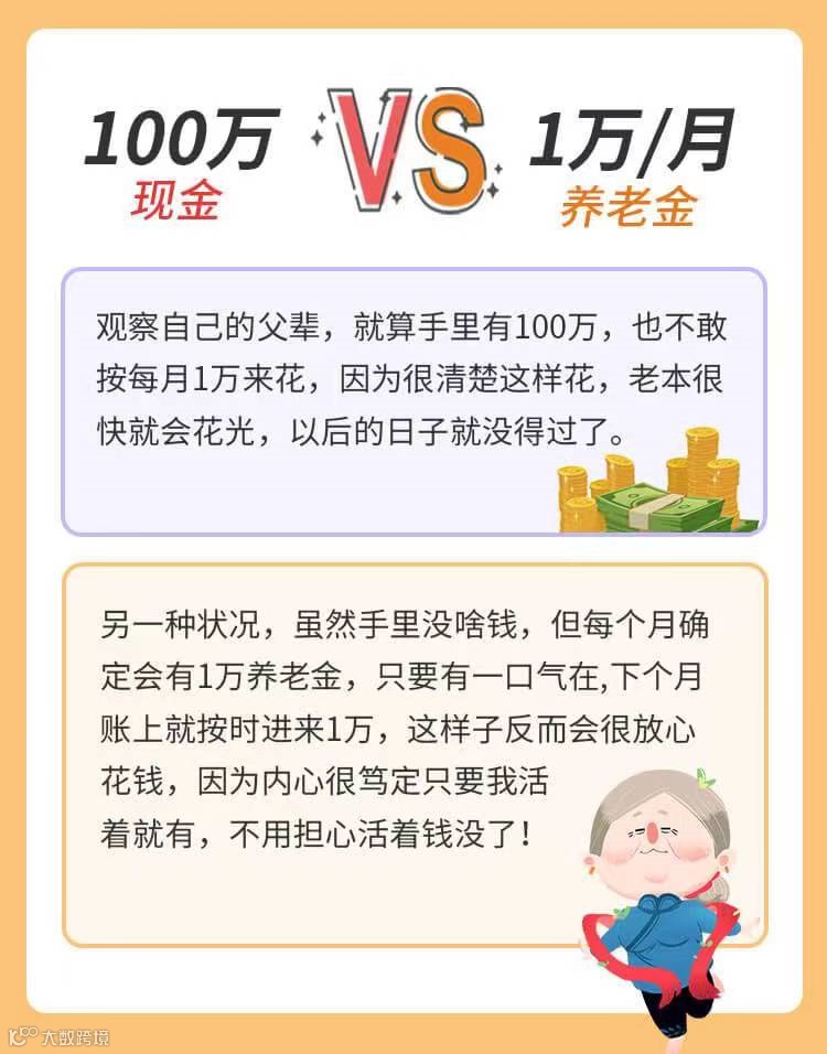 同样是养老,同样是现金流,100万现金和固定每月一万养老金(只要活着就会一直领)你会怎么选?