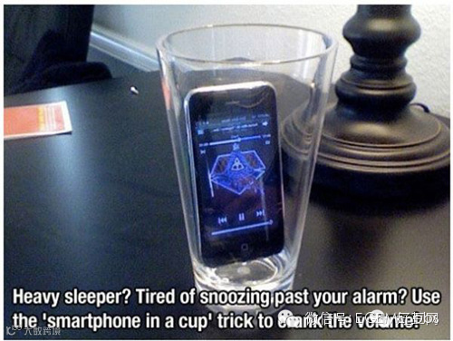 睡神!怕手机闹铃叫不醒你?那就把手机放敞口玻璃杯里试试呗~