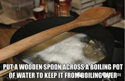 木勺子放在锅上可以防溢。