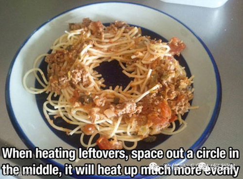 加热剩面条时,把面条拨散围个圈,能让面条受热更均匀。