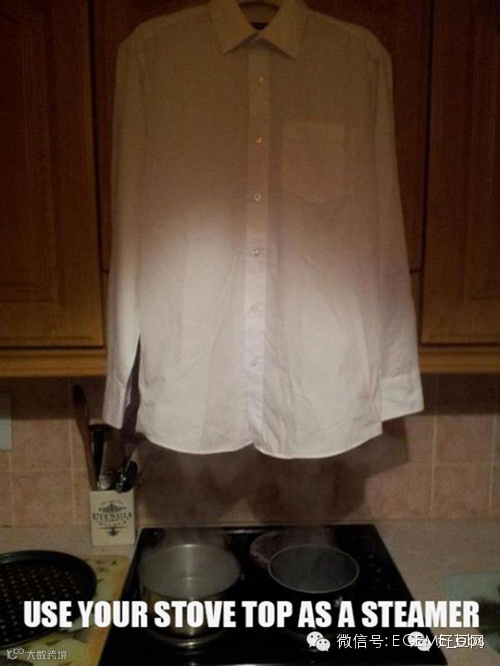 把衬衫挂在煮锅上让它舒展~