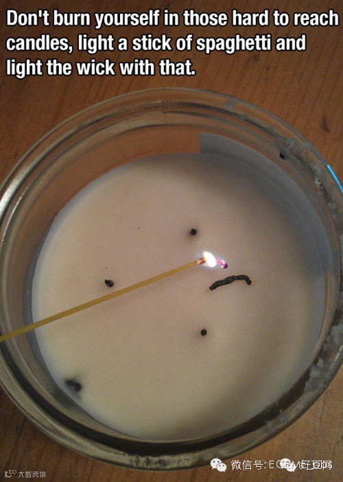 烛芯太短,点燃的时候容易不小心烫到手,不妨用一根意面来点。