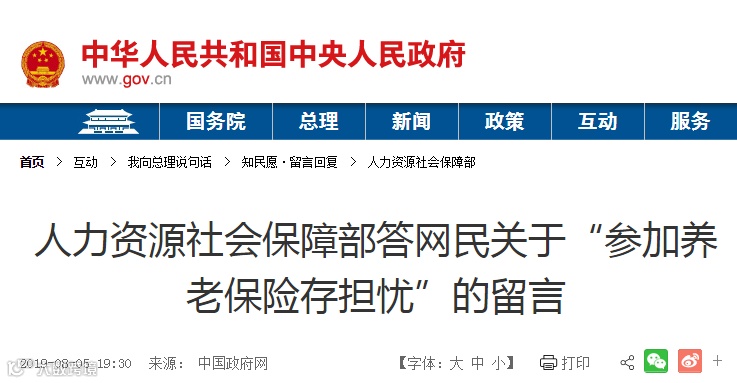 近日,人社部通过中国政府网,回应了5个养老保险的热点问题!