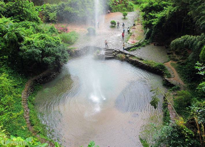 水帘洞为武夷山著名的七十二洞之一。位于章堂涧之北。进入景点处,有一线小飞瀑自霞滨岩顶飞泻而下,称为小水帘洞,拾级而上,即抵水帘洞。洞顶危岩斜覆,洞穴深藏于收敛的岩腰之内。洞口斜向大敞,洞顶凉爽遮阳。两股飞泉倾泻自百余米的斜覆岩顶,宛若两条游龙喷射龙涎,飘洒山间,又像两道珠帘,从长空垂向人间,故又称珠帘洞。
