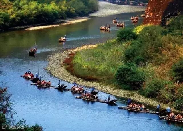 九曲溪发源于森林茂密的武夷山自然保护区,全长62.8公里。进入风景区的一段河流除受河流自然弯曲的作用之外,还受多组岩层断裂方向控制,形成深切河曲,使9.5公里长的河流,直线距离仅5公里,曲率达1.9。九曲溪水流清澈,水源充沛,水质达国家地面水Ι类标准。