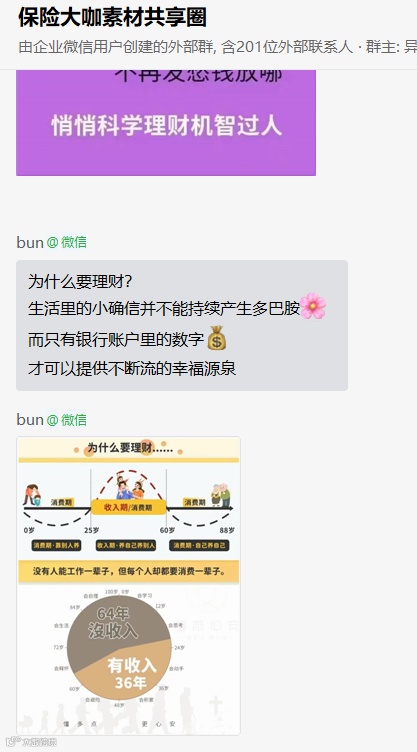 一起去营造了一个集思广益、优势互补、不断学习和进步的『保险大咖素材共享圈』