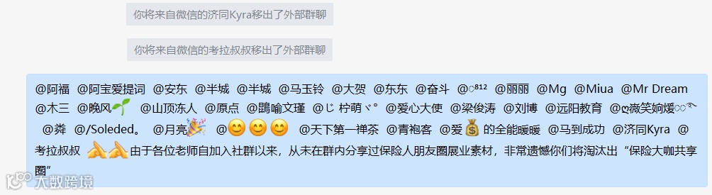 入群后一周内完全不分享至少1条素材,我们将这些名单移除该群聊