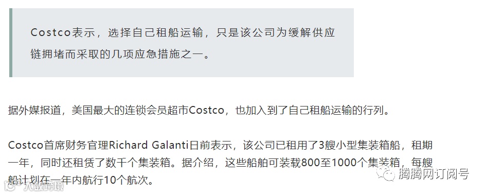 美国最大连锁超市,租下3艘集装箱船和数千个集装箱……