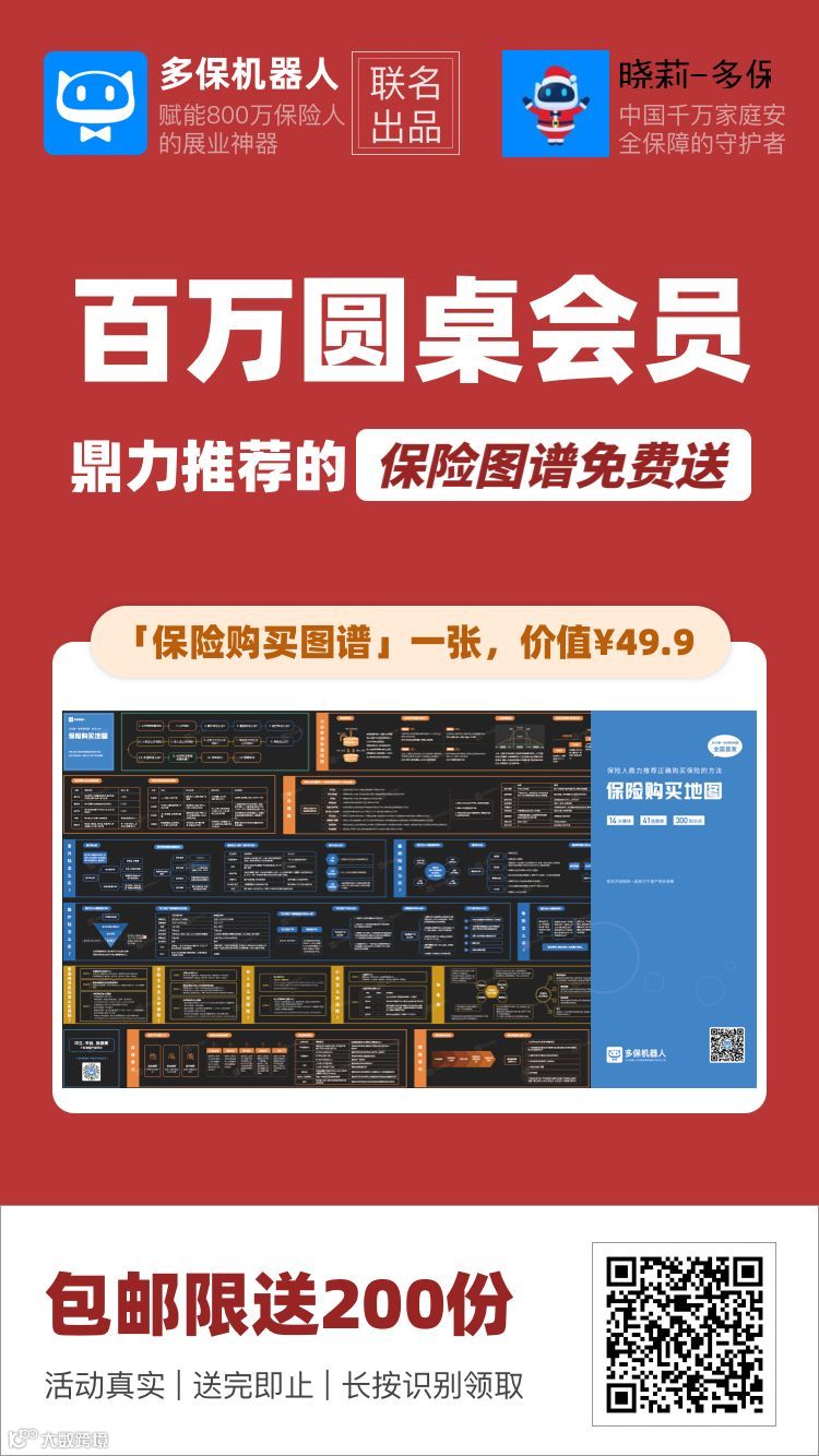 这张保险购买地图,总结了数十位百万圆桌会员的展业技巧跟保险购买的思路,梳理了14个模块、41张图表、300个知识点,耗时近2个月时间,制作出一份看完就懂、拿来就能展业签单的保险购买地图!