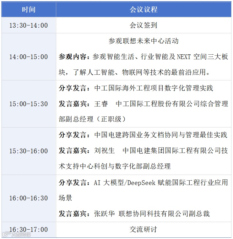 在国际工程领域,AI智能化浪潮浪潮正汹涌来袭,如何借势突破,实现转型升级?联想Filez联合中国对外承包工程商会,邀请您参加 2025 年第一期国际工程数字化优秀应用案例分享会。这里有前沿的数字化技术解析,有大模型落地的深度探讨,更有智慧生活与行业的沉浸式体验。