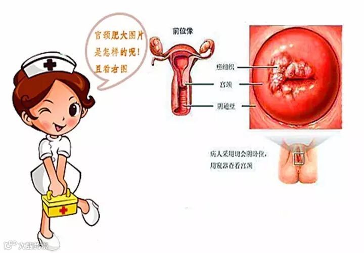 宫颈肥大如果得不到及时的重视,检查和治疗,很可能是宫颈的早期癌变,因此到医院妇科做宫颈分泌物的检查是关键性的一步。