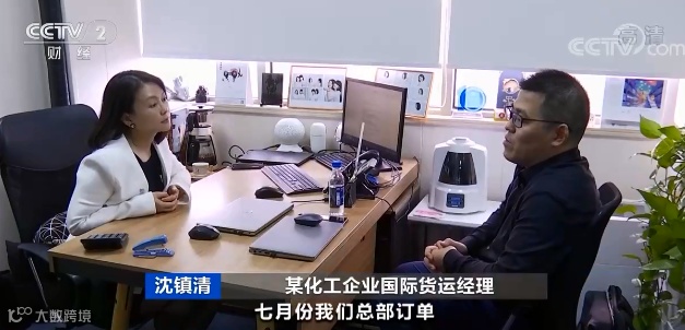 某化工企业国际货运经理 沈镇清:首先是我们的舱保(舱位),其实我们的需求远远高于舱保(舱位),所以现在没办法只能去找代理,没想到今年到现在已经涨到了五六倍的价格。发往北美航线小箱是15000美元左右,大箱是18000美元左右。