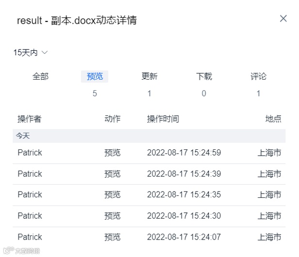 文件状态+SmartShare智能链接+zOffice表单调研:为了更好地提升员工学习成效,了解员工是否有认真参加培训,讲师的资料是否具备相应水准,让整个培训过程具有持续改善的动力,人力资源通过联想Filez文件动态可以清晰看到每个员工的访问记录,包括阅读、下载和评论的情况,可以了解员工学习与否。