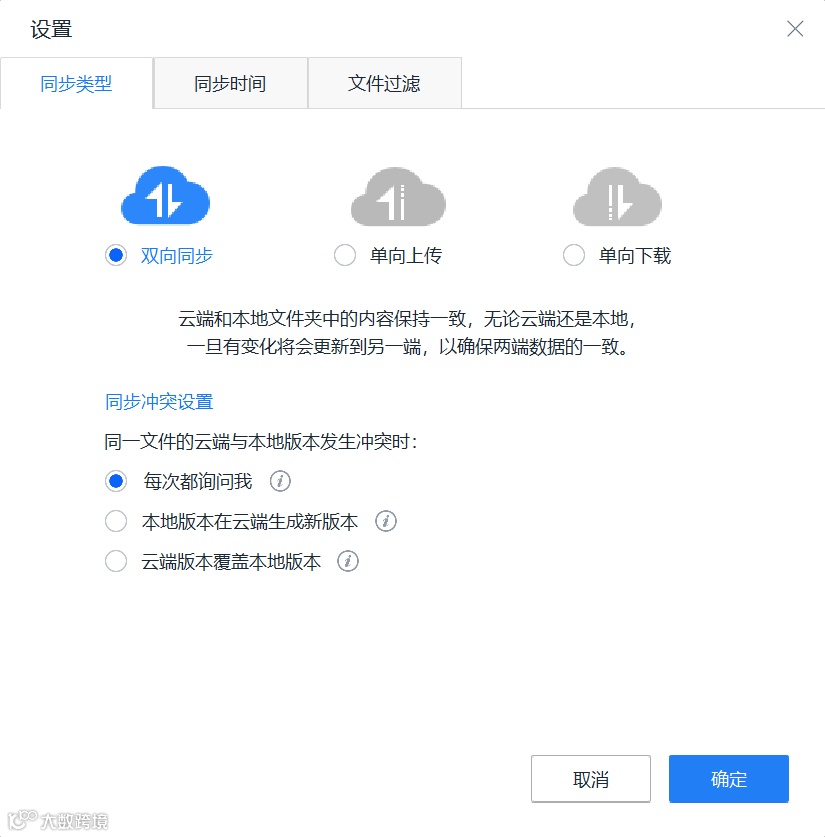 可以选择同步个人电脑本地的文件,还是将云端的文件同步回本地