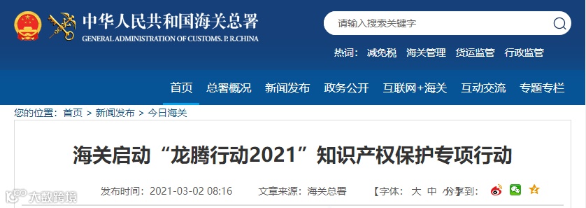 据海关总署官网3月2日消息,海关日前启动“龙腾行动2021”知识产权保护专项行动,锁定侵权新手法、新渠道,开展有针对性地打击。