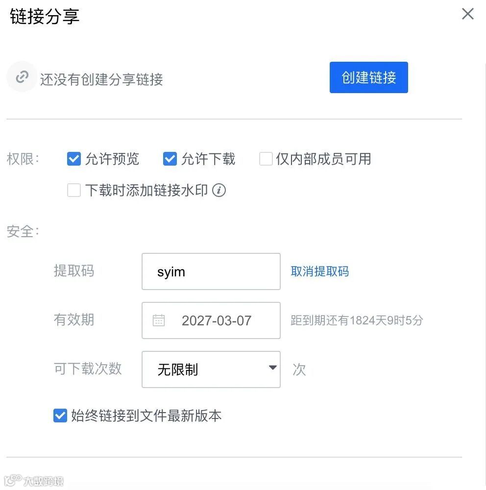 联想Filez可支持分发过程中的在线离线双管控:根据具体情况可设置权限:是否允许预览、允许下载,是否仅内部成员可用等,还可设置具体安全信息,如加密设置提取码、有效期和可下载次数。