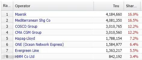 按市场份额计算,FMC的审计对象包含了前九大集装箱公司:马士基、地中海航运、中远海运集运、达飞轮船、长荣、赫伯罗特、ONE(Ocean Network Express)、HMM和阳明海运。前十大船公司只有以星幸免。