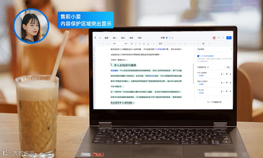 为了避免两人撰写的时候发生冲突,售前小爱通过zOffice内容保护功能设置可编辑区域权限,以及可以编辑该区域的人。