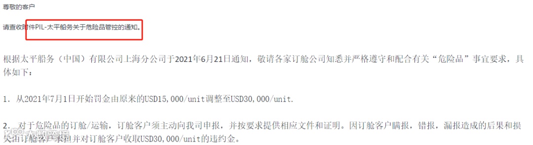 近期,多家船公司发布通知,以加强对危险品的管控。