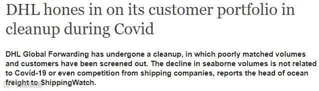据shippingwatch报道,DHL全球货运公司(DHL Global Forwarding)在疫情期间进行筛选和清理了一些不匹配的客户。