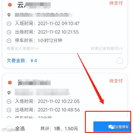 该情况出现时,可致电客服电话或驾乘人员通过APP、小程序及公众号查询停车信息,查询的停车信息无疑问后也可通过APP、小程序及公众号完成线上缴费或欠费补缴。