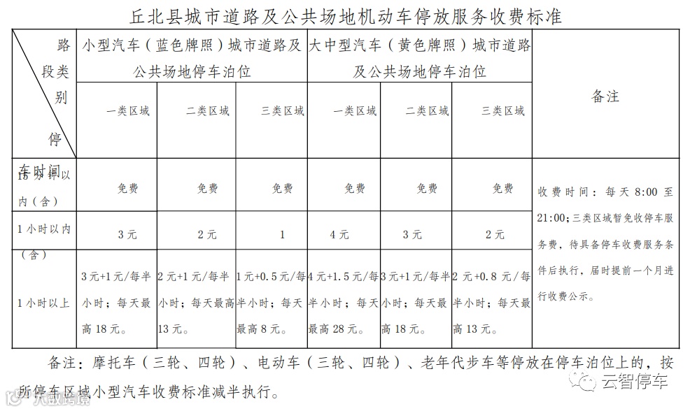 1.丘北停车的收费依据
