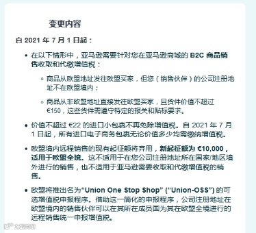 有不少卖家收到一封题为“2021年7月1日起欧盟电子商务增值税变更须知”的邮件。