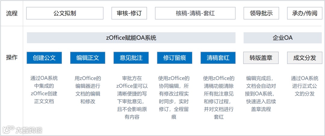 zOffice无需安装任何软件和插件,与OA无缝结合,将操作闭环搬上云端,全程赋能OA管理系统