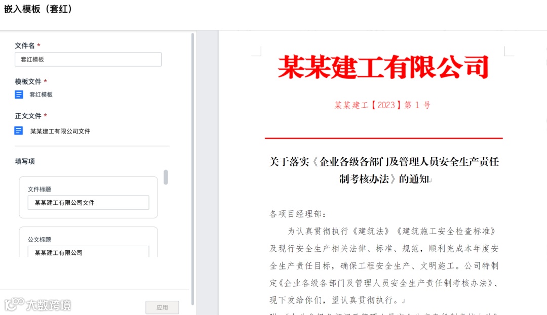 正文内容审核通过后,OA系统可以通过清稿接口快速清除文档内的所有批注和修订记录信息,方便文档进入业务流程的定稿阶段,满足文档清稿定稿需求。zOffice还支持对文档进行套红头模板的操作,有效提升了公文处理效率,并保证公文格式的规范性。