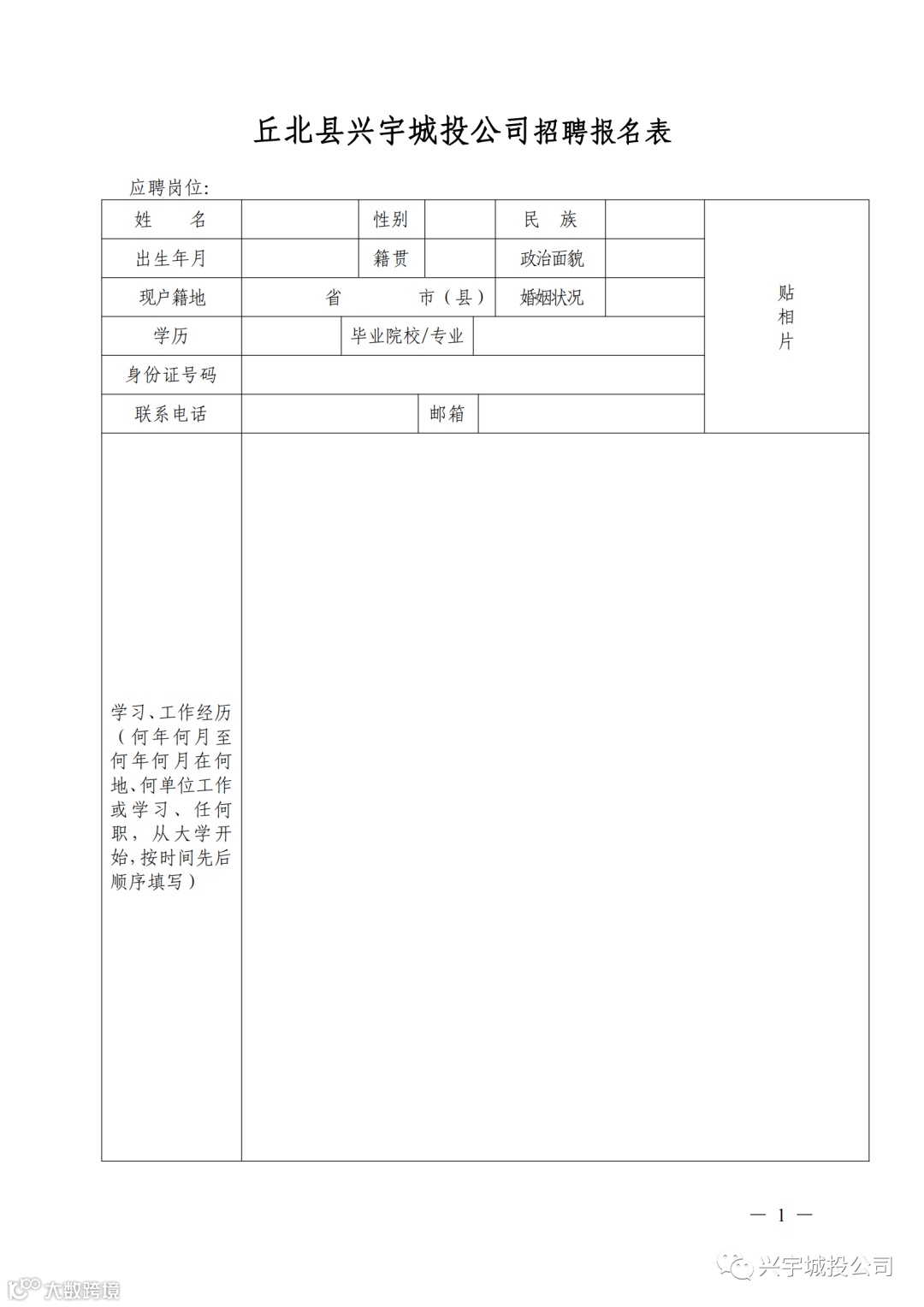 兴宇城投公司会计招聘报名表