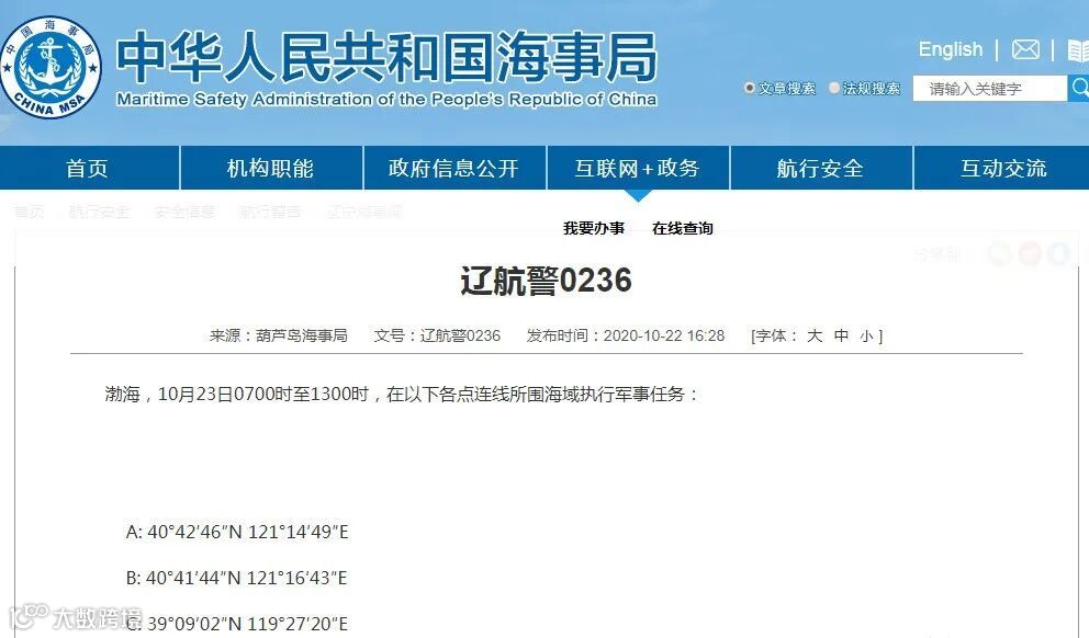 二、辽航警0236--渤海海域执行军事任务