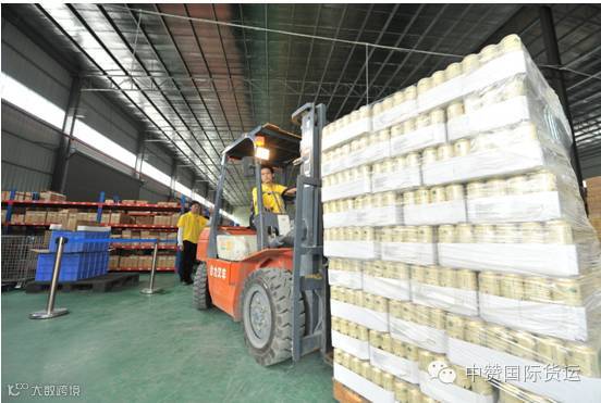 货车将货物拉到仓库后用叉车把货物放在收货区。在收货区,员工在一边操作叉车进行装卸作业,另一边的员工负责验收最新运到的商品。