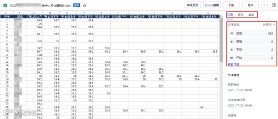 发起文件收集需求后,所有经授权的小伙伴可查看文件的详情,比如:预览、更新、下载、评论等数据,联想Filez还支持小伙伴们对文档的内容添加评论,即使没有面对面,也能高效沟通。