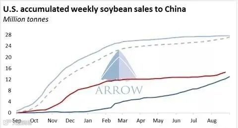 航运经纪公司Arrow预计,随着美国新大豆作物的收获,未来几个月的发货量预计还将加速。中国买家已经为下一个营销年增加了购买量。