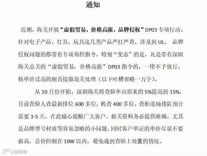 近日,深圳海关正在开展“虚假贸易,价格高报,品牌侵权”DP03专项行动。