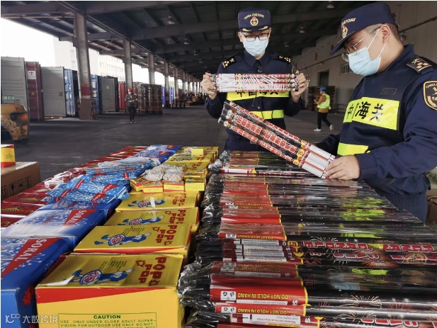 10月27日,北仑海关通报查获1批次伪报夹藏烟花爆竹出口集装箱。