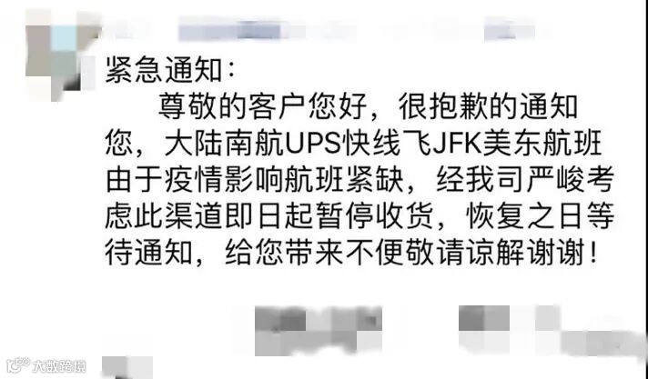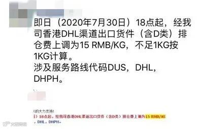 现在疫情还在继续,UPS的部分航线运力依旧不足,航班面临紧缺,有些物流公司已经开始开始暂停收货,某物流公司工作人员也表示:“我们大陆南航UPS快线飞JFK美东航班已经紧缺,此渠道暂停收货了。”由于香港DHL排仓严重,有些物流公司开始就宣布香港DHL渠道出口货件排仓价格上调。8月2日起,空派价格每公斤上涨10元。香港DHL敏感货渠道排仓费每公斤上调12元。