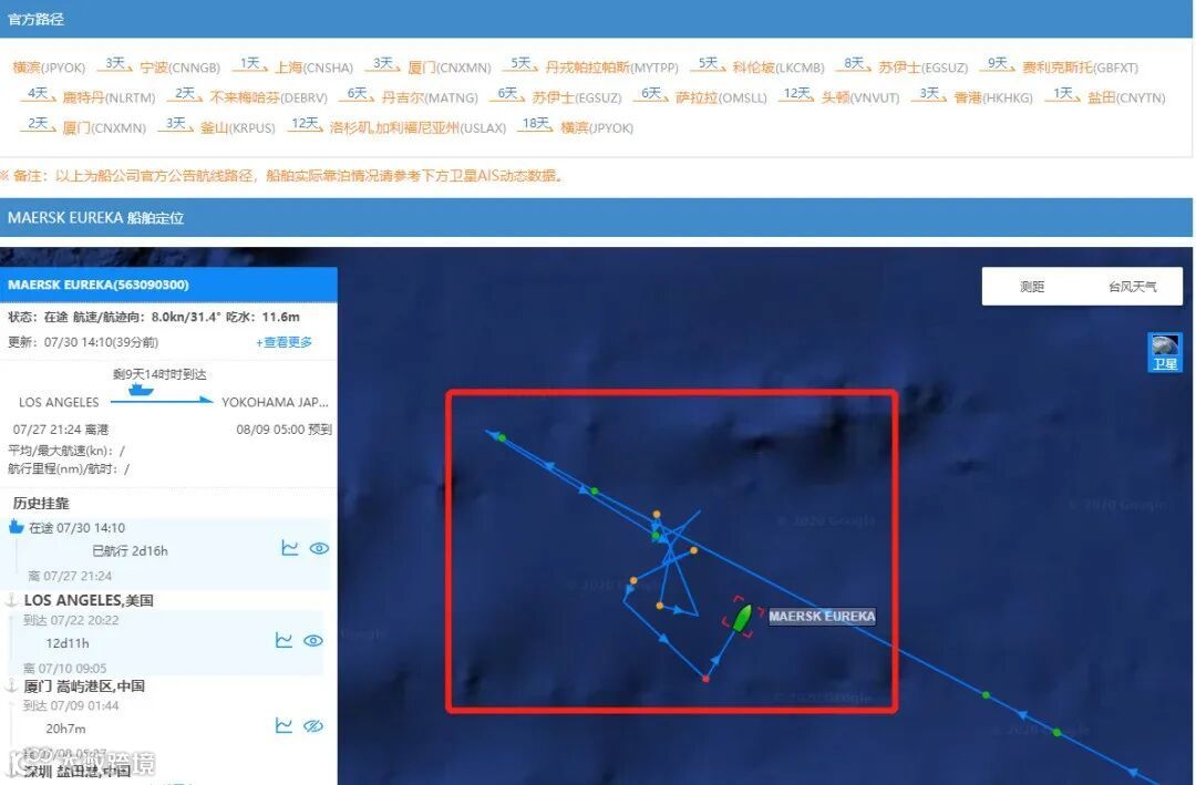 ▼维运网-“MAERSK EUREKA”号船舶定位